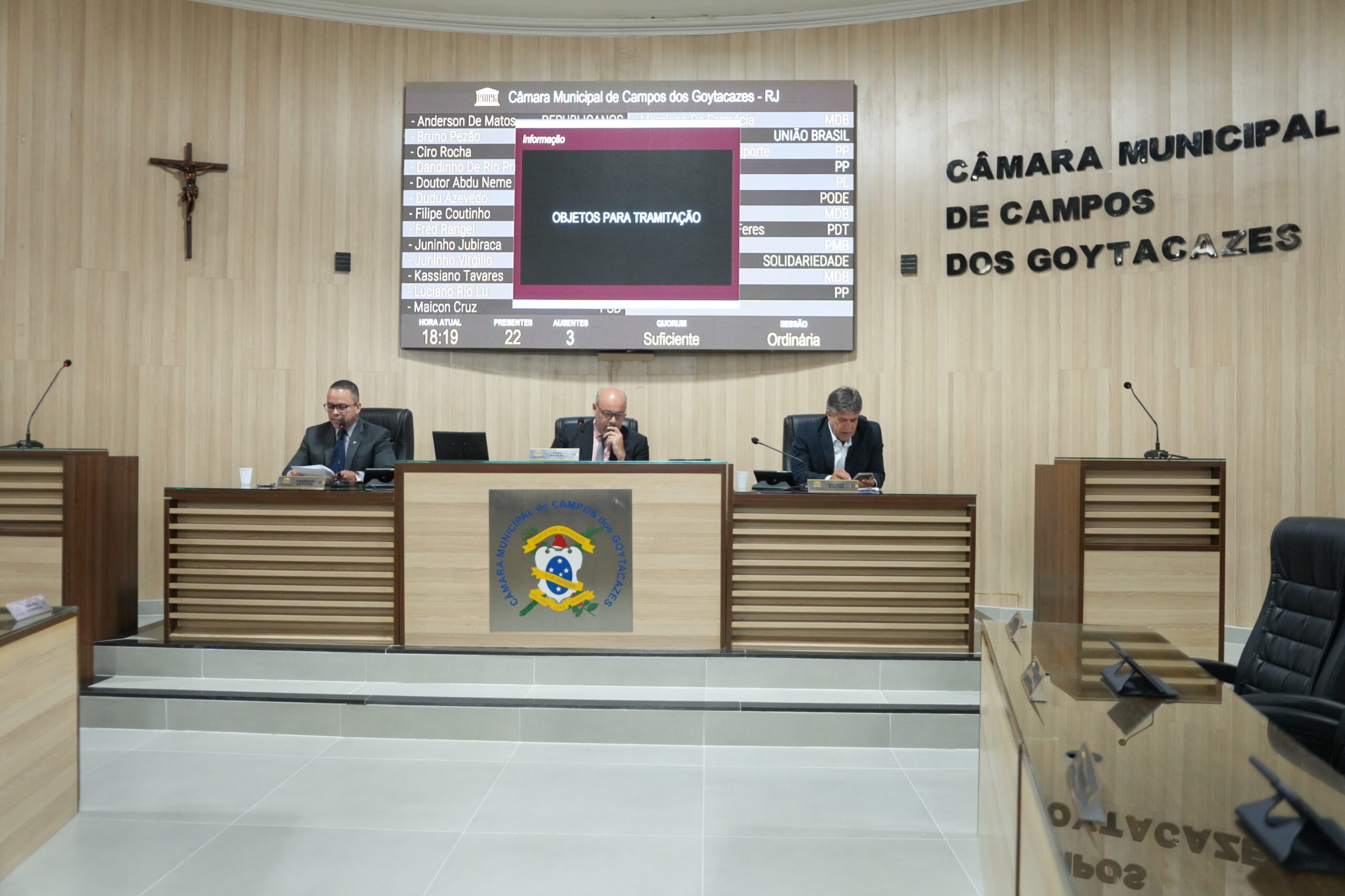 Em sessões realizadas nesta quarta-feira (11), na Câmara Municipal de Campos dos Goytacazes, os vereadores aprovaram dois projetos do Gabinete do Prefeito, em regime de urgência: Projeto de Lei nº 0016/2026, que institui o Fundo Municipal de Proteção e Defesa Civil – FUMPDEC no Município de Campos dos Goytacazes e o Projeto de Lei nº 0019/2026, que dispõe sobre a adequação do salário mínimo no âmbito da administração pública municipal. Os dois também tiveram a redação final aprovada. Segundo turno Em segundo turno, foram aprovados: Do Professor Marcelo Feres (PDT), o Projeto de Lei nº 0362/2025, que institui o Concurso Anual de Empreendedorismo Estudantil no Município de Campos dos Goytacazes; e o Projeto de Lei nº 0363/2025, que dispõe sobre a criação do Programa Municipal de Estágio Técnico Supervisionado em Secretarias e Órgãos da Administração Pública Municipal. Primeiro turno Já em primeiro turno, foram aprovados: De Marquinho Bacellar (União), o Projeto de Lei nº 0263/2025, que institui o Selo Igualdade Salarial CG, destinado a reconhecer pessoas jurídicas de direito privado que comprovem o cumprimento da Lei Federal nº 14.611, de 3 de julho de 2023, que dispõe sobre a igualdade salarial e de critérios remuneratórios entre mulheres e homens.; Do…