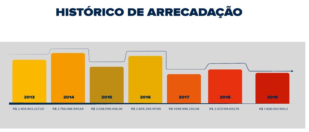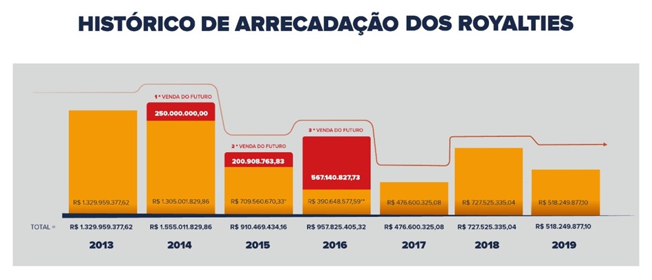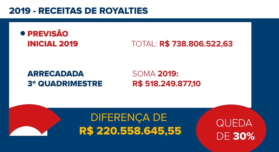 Ainda foi demonstrada a queda na arrecadação de receita de royalties referente ao ano de 2019.