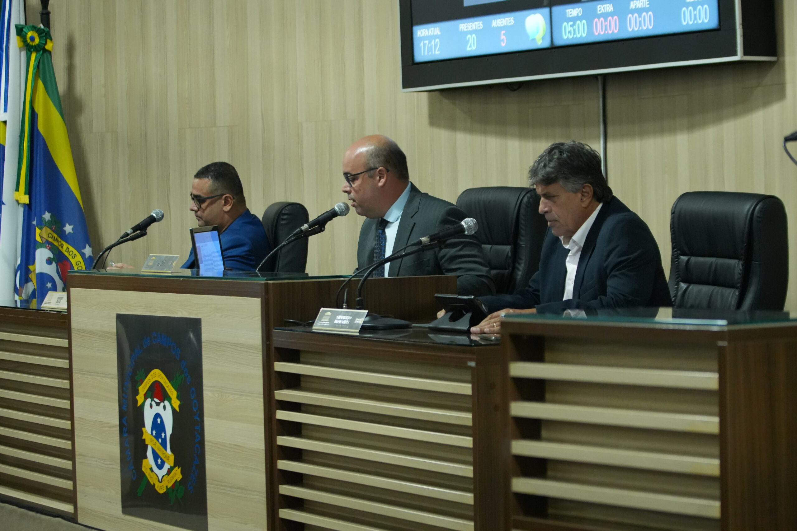 Na Ordem do Dia, o Projeto de Lei nº 0119/2025, do Gabinete do Prefeito, que dispõe sobre a estrutura administrativa da Prefeitura Municipal de Campos dos Goytacazes, de cargos de provimento em comissão e função gratificada foi colocado em votação em regime de urgência. O projeto foi aprovado por maioria.